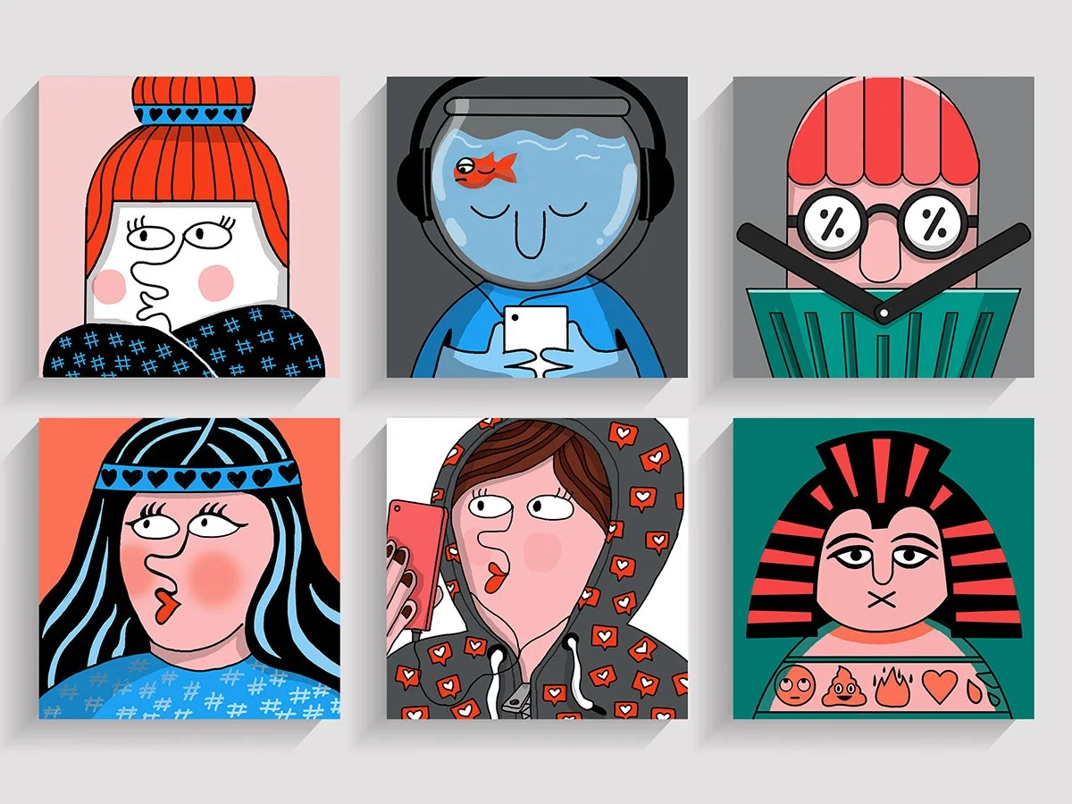 Characters – Based on the 21st Century TotemsThese characters are inspired by the 21st Century Totems sculpture series. They later evolved into the Fishbowl Head illustration series, continuing the exploration of identity, emotion, and symbolic form. ← Illustration Next Project →