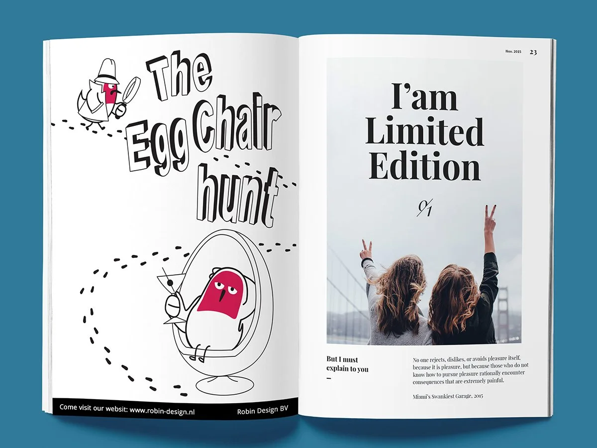Character design for Robin Character design and illustration for Robin-design.nl, a Dutch furniture design company. The illustrations were used on their website, delivery trucks, and for various commercial purposes. Animations for the character were made by Galia Osmo.