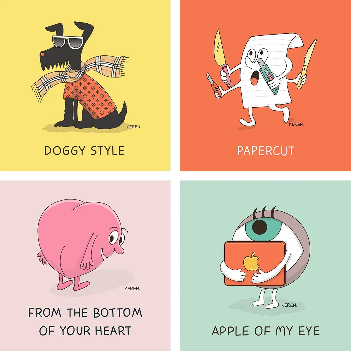 “Word Game” A series of over 180 illustrations created between 2014 and 2018, playfully visualizing idioms, phrases, and nouns through literal interpretations. The pun-filled collection includes pieces like “Old School” — a schoolhouse with a beard and cane — and “Fast Food”, featuring a runaway box of French fries. The series was featured by The Huffington Post, Bored Panda, and various other media outlets. You can view the full collection on my Instagram.